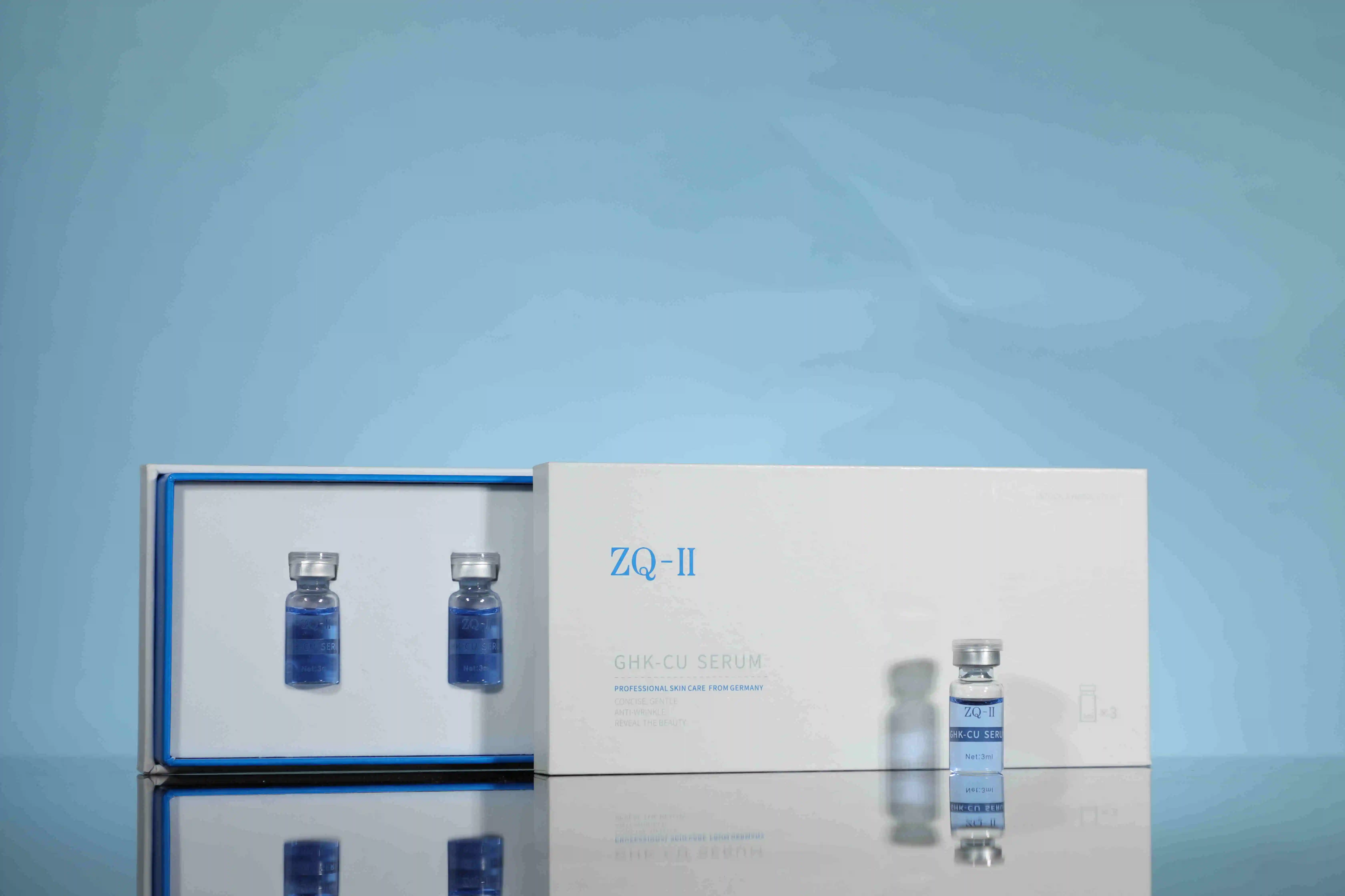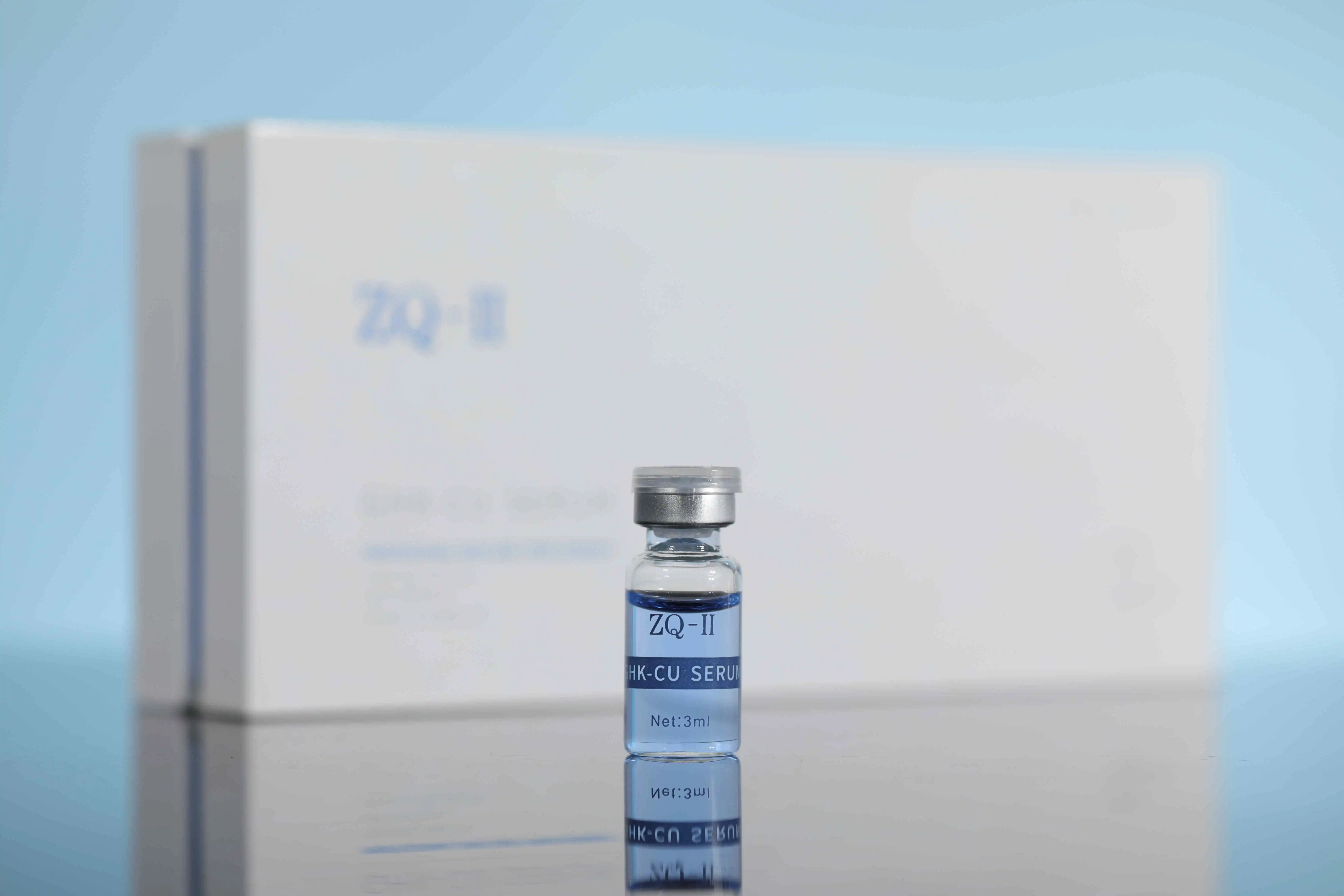त्यांना का म्हणतात "तांबे पेप्टाइड्स"किंवा"ब्लू कॉपर पेप्टाइड्स"? जेव्हा पाण्यात मिसळले जाते, तेव्हा ते या भव्य निळ्या सावलीवर वळतात. ही कॉपर आयनची जादू आहे ज्यास ट्रिपप्टाइड स्ट्रक्चरसह बंधनकारक आहे. आपण त्यांना बर्याचदा उत्पादन लेबलांवर जीएचके-क्यू म्हणून सूचीबद्ध केले पाहिजे."झेडक्यू-आयआय जीएचके-क्यू सीरम.